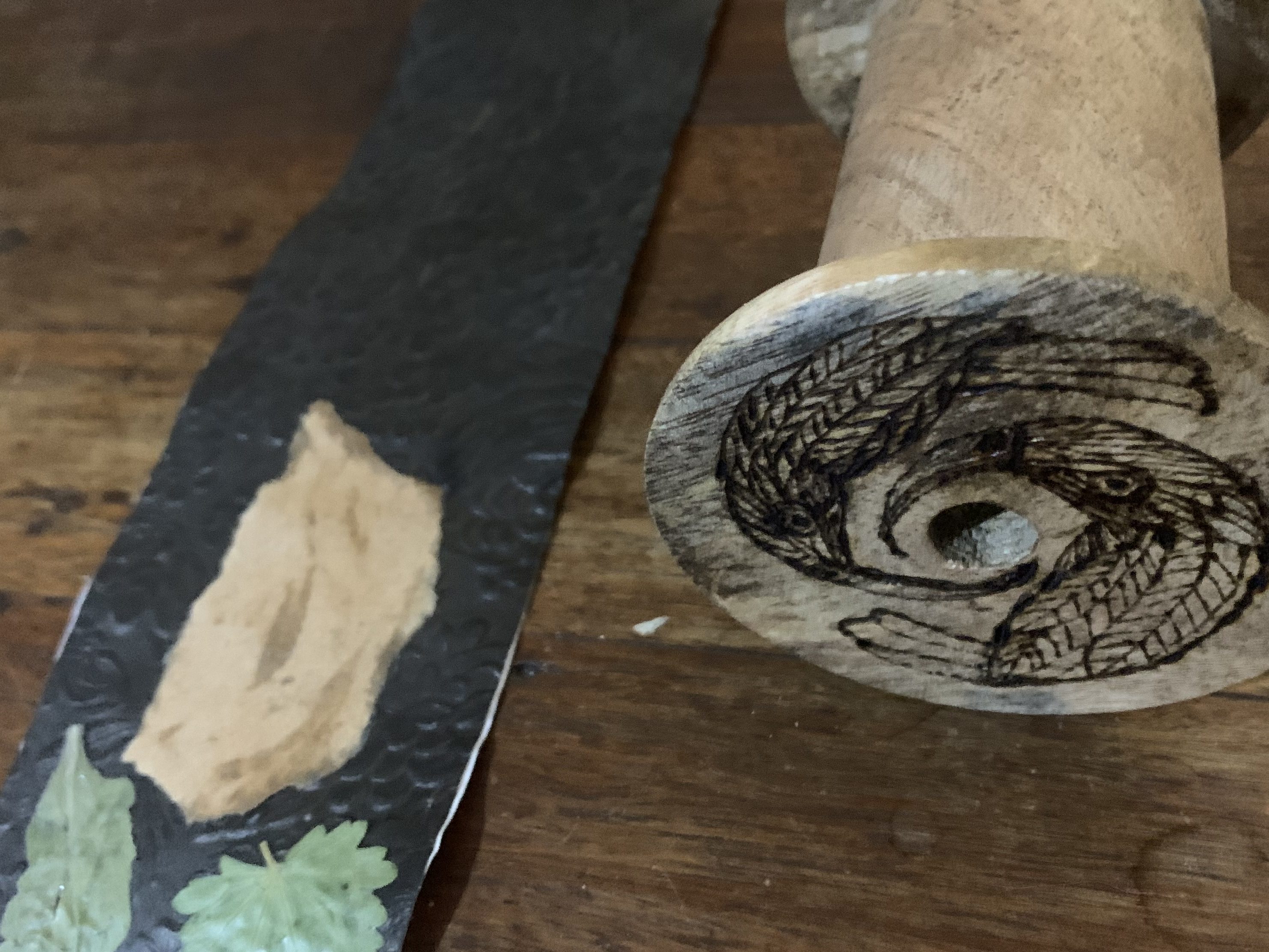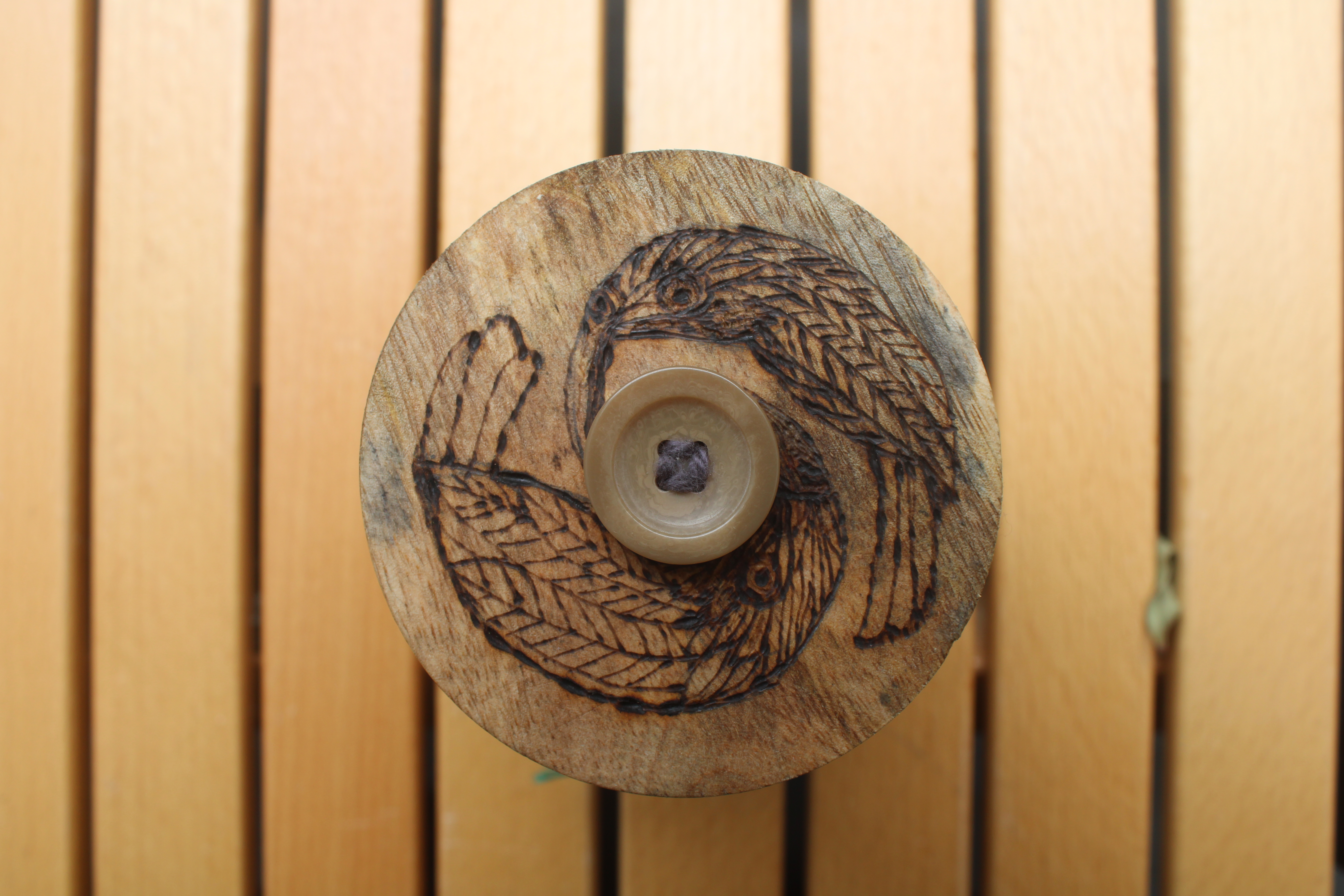 I also burned and carved some new holland honeyeaters into each end of the spool.