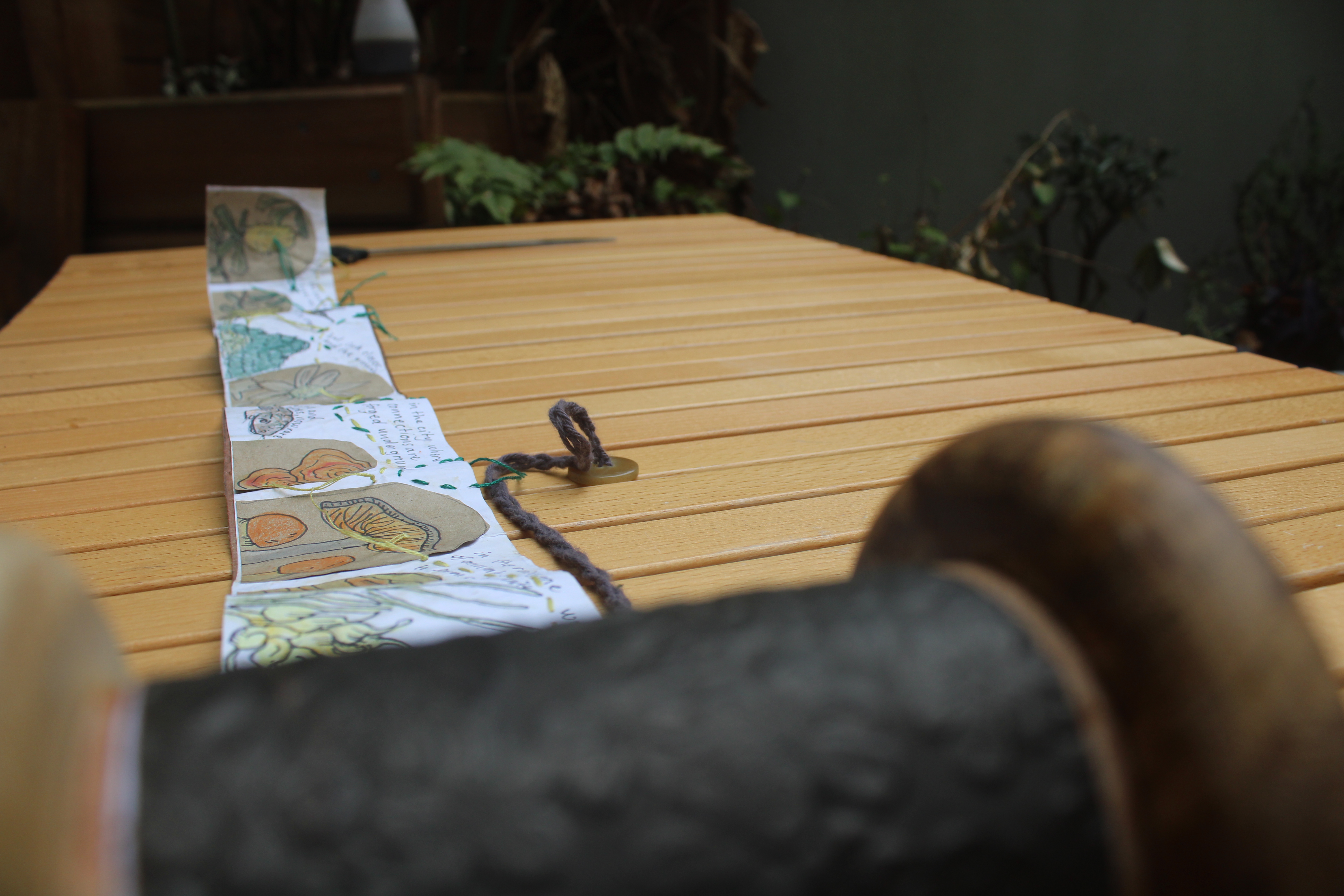 As I enter my third year of writing my second book using foraged and hand crafted inks and collages, I am starting to experiment with different styles of drawing again. This time using old pencils, pen and paper. I am still adamant about my interrogation of the materiality of art making. I have utilised my ongoing reputation as a trash gremlin who will accept all sorts of random knick knacks for arty things.